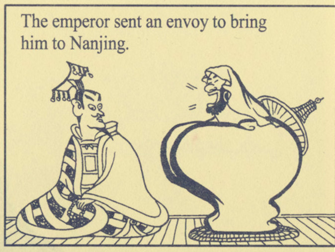 当时的梁武帝萧衍崇信佛教,派使者去请达摩到都城建业会面(今南京)。