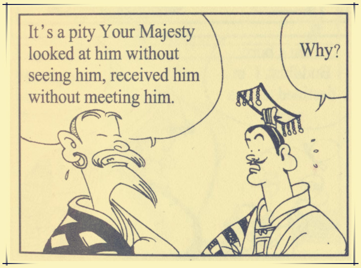 “很遗憾啊,尊敬的陛下,您看着达摩却并未真正看见他;您接见了达摩却并未会见他啊。”