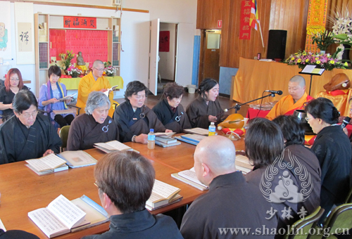 【本网讯】2012年8月31日,农历七月十五日,为佛教传统节日——盂兰盆节,澳洲少林文化中心举办了为期两天的盂兰盆节暨祈福法会活动。延阔、延晔、延弨和延岚四位法师,带领四方善信以虔诚之心参与了此次神圣的法会,并为大家开示道:“教导善众心存感恩之心,方能超度七世父母。”前澳大利亚佛教协会主席赖·格籣姆先生及墨尔本越南佛教会理事长释源藏法师也参加了此次法会。