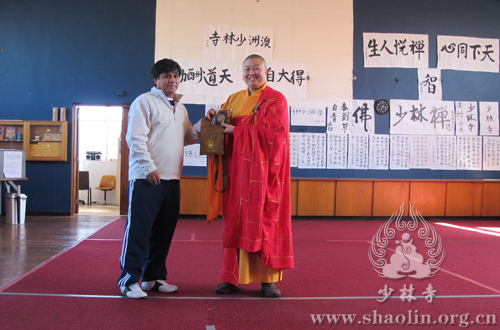 最后,文化中心的法师及学员们向大家展示了精妙绝伦的少林功夫和禅修打坐,并为书法成绩优异的学员颁发了奖品。