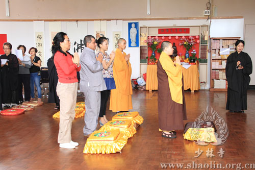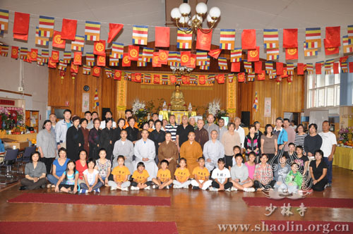 【本网讯】2012年12月29日,农历十一月十七,是阿弥陀佛的圣诞日。澳洲少林禅武堂举行了隆重的祈福法会,法会由延洁法师主持。延洁法师带领僧众及居士善信,虔诚诵经祈福,祈愿众生欢喜自在,世界和平。其间,澳洲少林禅武堂开展了丰富多彩的活动,少林武僧还为大家传授八段锦等少林传统养生功法。中午,诸位居士善信共聚少林禅武堂,举行了上供法会,共沾法喜。