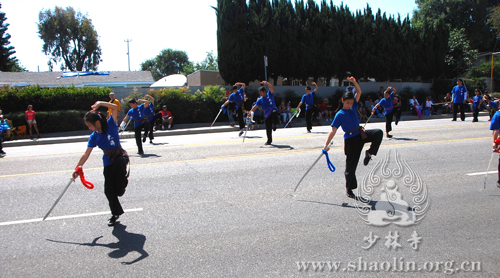 据悉,包括美国洛杉矶少林功夫禅学院组成的少林功夫方队在内,今年有近百个代表队伍欢喜参加哈岗游行活动。作为2015年洛杉矶特奥会接待城市,哈岗特奥委会接待城市义工团队和特奥委会大使也一同参加了游行。此外,还有退伍军人旗队、男女童子军、高中军乐队与拉拉队、马队、古董车队、自行车队、教会信众方队等。国会议员Ed Royce以及Dr. Joseph Chang,Jay Chen等哈岗拉朋地联合学区(Hacienda La Puente Unified School District)教委等,也一起加入了游行队伍。(责任编辑:法喜)