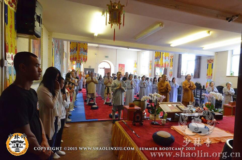 【本网讯】每到暑假时节,海外少林文化中心开展的夏令营活动成为很多年轻人认识佛法、学习佛法,体验佛教生活、获得法益的直接选择。2015年8月1日至13日,来自当地的善信及学校的学生们,近百人在位于伦敦的英国少林修文化中心进行暑期夏令营活动。走进佛堂、认识佛教、亲近佛法,感受来自佛法的心灵清净与关怀,在善知识们的悉心开示及循循告诫中,营员们能开启心的妙用和生命的觉悟之旅。