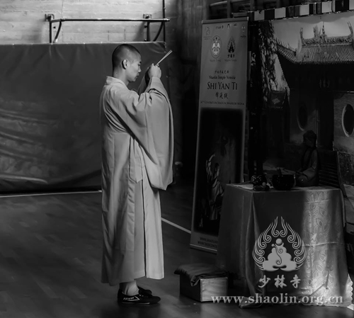 当天上午,数十名意大利威尼斯少林文化中心的学员们从米兰、维琴察博洛尼亚、乌迪内赶来。延提法师拈香主法,与学员一起参加祈福法会,共同祈福世界和平,少林文化泽被苍生。