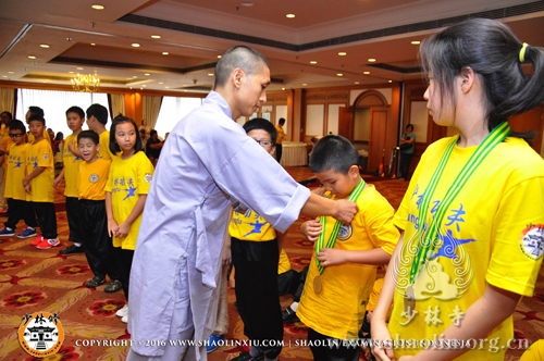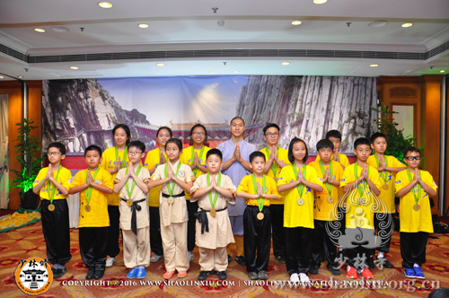 本次考功大会的学员分别来自印尼SANTA URSULA BSD 学校、NATIONAI HIGH 学校、EKAYANA 禅寺、LUPAN 庙等,150多位家长前来观看考功大赛。大赛间隙,印尼少林修文化中心负责人延豪带领学生展演了精彩的少林功夫,赢得满堂喝彩。