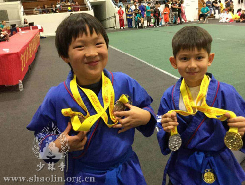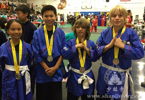 在随后的比赛中,美国橙县少林文化中心的学员们先后获得五个金牌(少儿组两个,青年组两个,成年组一个)、七个银牌、十个铜牌的好成绩。(责编:佛心)