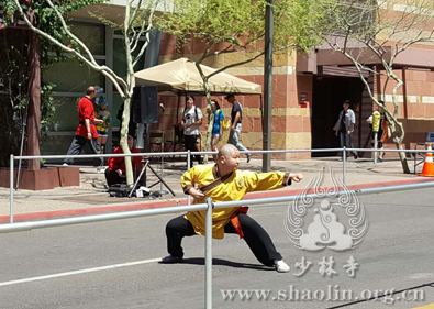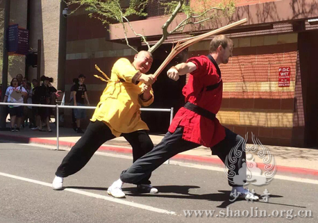 活动当天,亚利桑那州气温飙升至36℃,在负责人延倾的带领下,学员们积极认真完成太祖长拳,小洪拳,硬气功,刀、剑,徒手对练,九节鞭,阴手棍,盾牌刀,功夫扇,太极拳等少林传统功夫的展演,现场掌声如雷,喝彩声不断。