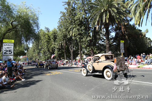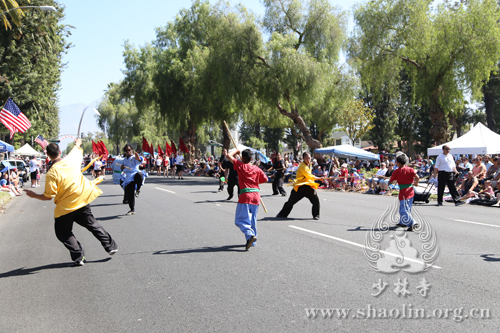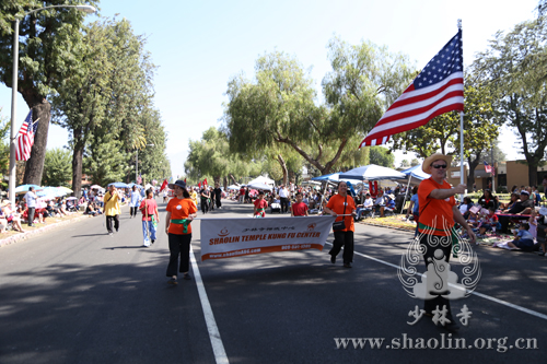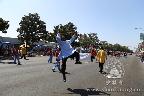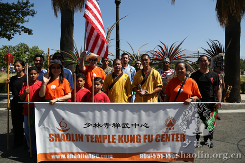 当天的国庆游行活动由一百多个方队组成,美国加州奇诺岗市、库卡蒙格牧场市少林禅武中心一行二十人,在负责人延吉、延翌的带领下,向市民展示了少林拳术、少林器械等传统少林功夫,受到民众热烈欢迎。