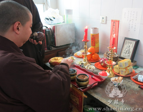 January 23, 2014 (December 23, 2013) was both the Minor Spring Festival, one of Chinese traditional festivals and Shaolin Temple’s Dharma protector Bodhisattva Kimnara’s birthday. On that day, Shaolin Temple’s sub-temple Panshan Northern Shaolin Temple held a prayer to commemorate Bodhisattva Kimnara and may the country be prosperous and the people at peace.