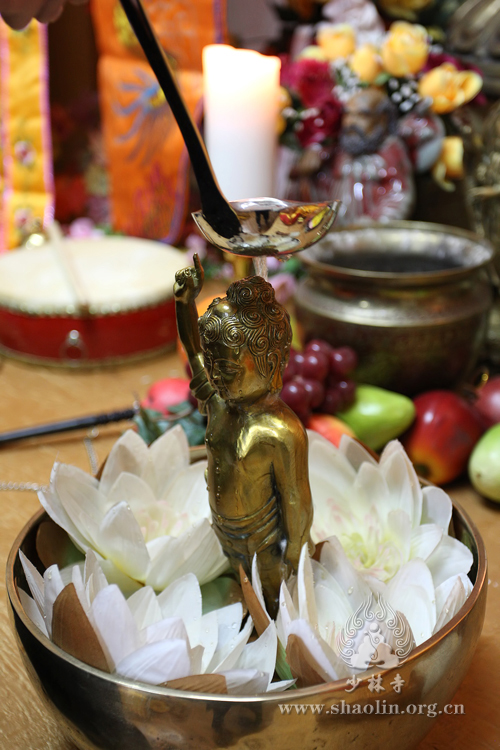 The Bathing Buddha ceremony is not just a ritual for Buddhists. It's very important for all human beings. By pouring water over the shoulders of the Buddha it serves as a reminder to purify the mind from greed, hatred and ignorance. The ceremony symbolizes the washing away of greed, hatred and ignorance and purification of one's heart and mind. Master Shi Yan Kong, the Director of the Athens Shaolin Cultural Center said to the gathering.
