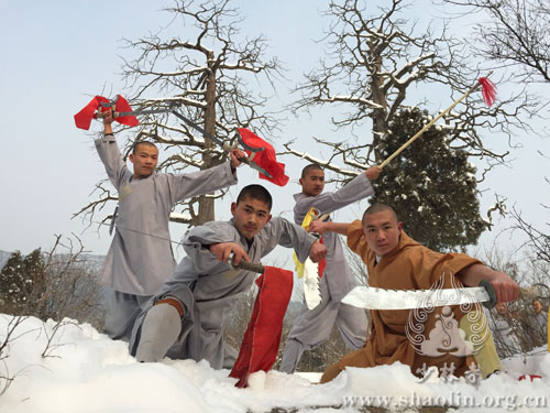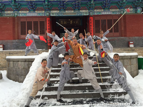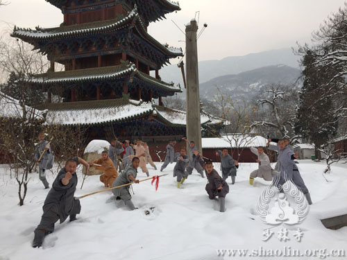 On the afternoon of January 28,2015, the first significant snowfall of 2015 came superisingly to the place of origination of the Buddhist Chan Order-Shaolin Temple. All of a sudden, the snowflakes with blessings danced in the Shaoshi Mountain and fell on Shaolin Monastery, which made the ancient temple more quite and sublime.It was not until the next morning that the heavy snow stopped. At that day, the Shaolin Temple kung fu monks industriously practiced kung fu as usual despite of the chilly wind. They have made a great progress as a result of their diligent practices with Chan in heart.