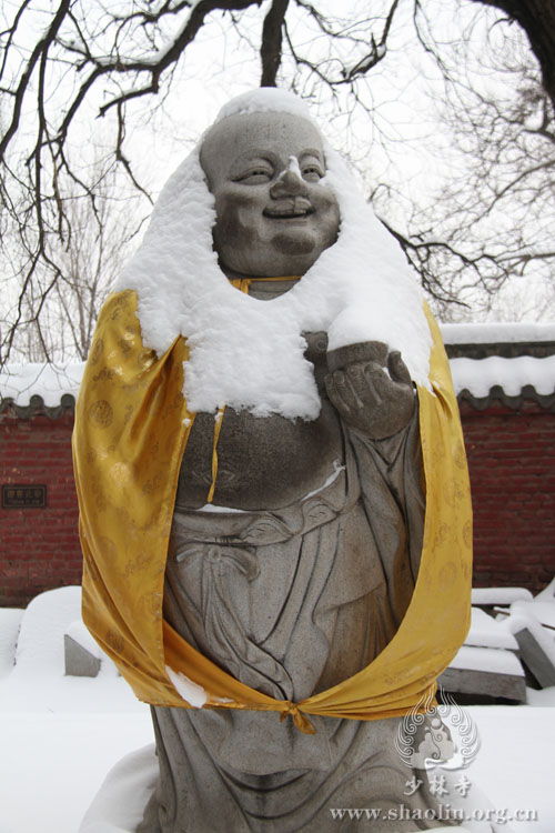 The Happy Buddha in the snow