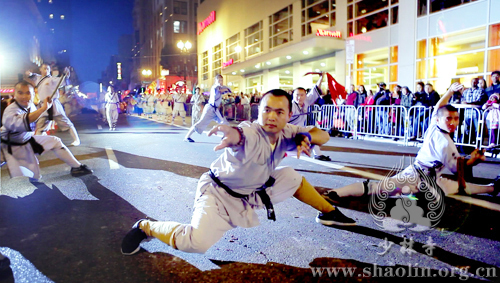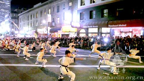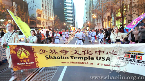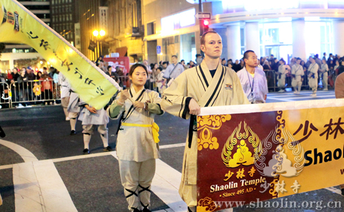 This is the sixth consecutive year that Shaolin Temple USA was invited to participate in this world famous parade. The 50-member Shaolin unit comprising Shaolin warrior monks and their students from Shaolin Temple Culture Centers in San Francisco, Fremont, California and Stanford University showcased magnificent Shaolin Kung Fu in a breathtaking program that enthralled hundreds of thousands of street spectators and millions of TV and web viewers.