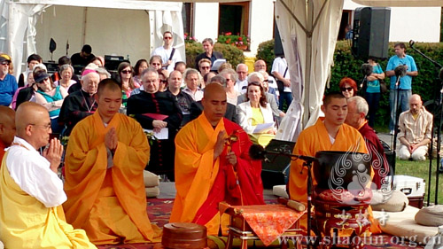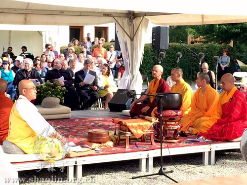 At 4:00p.m. on May 31, 2015(local time), organized by the Austria Buddhist Association, Activities celebrating the Birthday of the Buddha were held by the local Buddhist temples and worshippers on the banks of the Danube of Vienna. The Austrian Shaolin Cultural Center attended the activity on invitation. Besides, Master Yanliang, head of the center, presided over the ceremony with other masters. President and Vice President of the Austria Buddhist Association, Austrian Cardinal, the monastic mangers and worshippers of temples in Fuguangshan Monastery, Japan, Sri Lanka, Thailand, etc, also attended this activity.