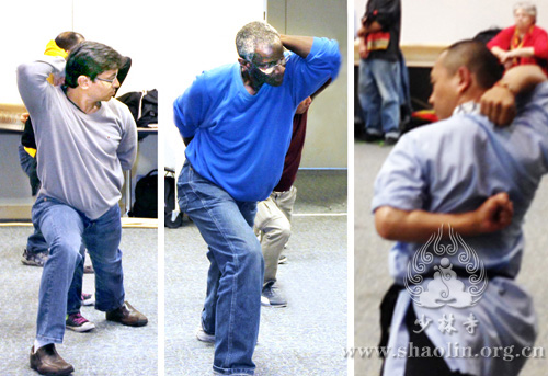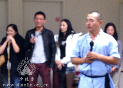 Masters and students of Shaolin Temple USA performed the Shaolin Boxing, Shaolin Weapons and Hard Qigong at first. Later on, Master Yanran introduced the connotaion and effect of Shaolin Kungfu with the unity of Chan and Martial arts, and led by him, people experienced the classical Shaolin Regimen such as Shaolin sitted Ba Duan Jin, Yi Jin Jing and Xi Sui Jing,etc. After the experience, the practitioners all said that these regimens relieved their stress, and they expressed their sincere gratitude to Shaolin Temple USA for the regimen, which was effective, easy to learn and good for both young and old.