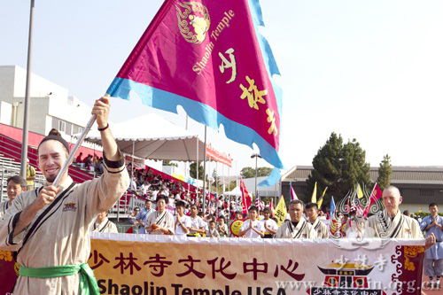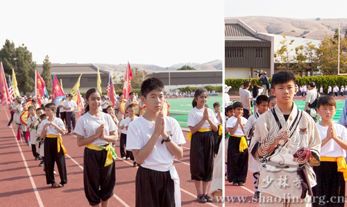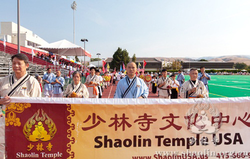 Students of Shaolin Temple USA enter the stadium