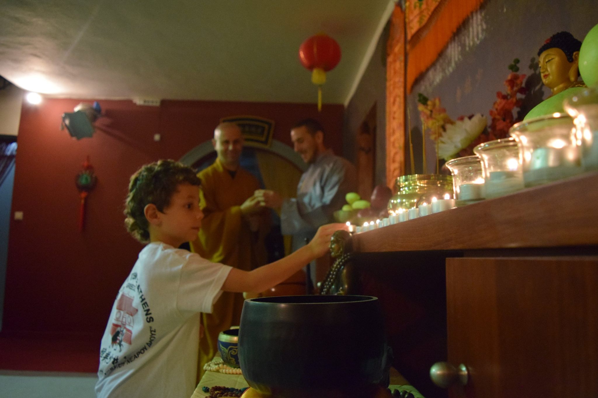 On 16th November, Shaolin Temple Athens, celebrated, as every year, the Birthday of the of Patriarch Bodhidharma the 1st Chinese Chan Master. Master Shi Yanxiang, director of Shaolin Temple Athens, welcomed the attendees at 19:30. At 19:45 the ceremony began and at the end Master Yan Xiang passed the light to all of his students saying ‘’Damo Zu Shi’’ and every students replied ‘’Amituofo’’. After the ceremony Master Yanxiang, readed the history of Bodhidharma for 45 minutes. At the end there was a 30 minutes Chan meditation session and after meditation Vegan cuisine served to everybody.