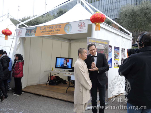 Shaolin Culture video on screens in the celebration grabbed the attention of media reporters and local people. Besides, Master Yan Hui received an interview by journalists and introduced Shaolin Culture to the local people.
