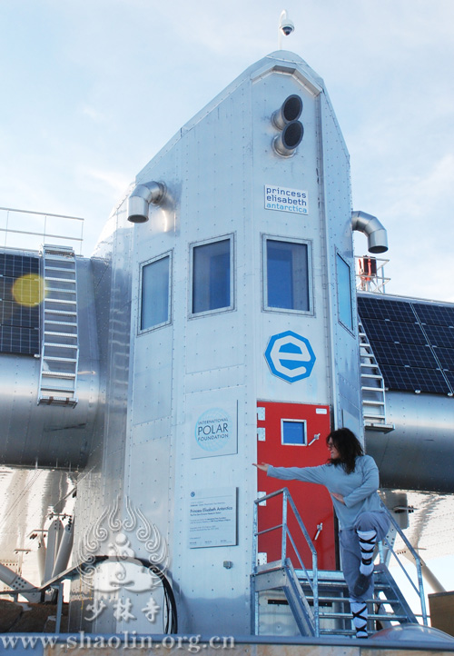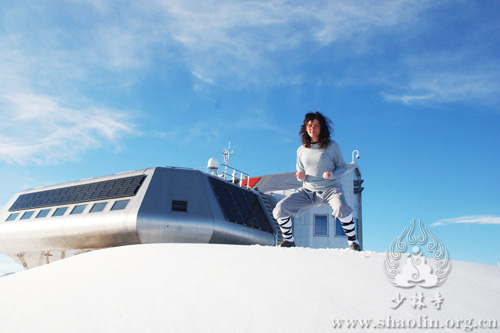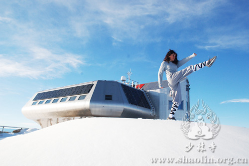 Chiara practiced Shaolin Kung Fu and Chan meditation in the Antartica snow fields and in the international research center, enjoying the benefits of Shaolin culture in this challenging environment and sharing some exercises and ideas with her international colleagues! (News: Shi Xingmi)