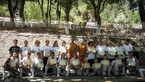 Apart from the basic training every night accompanied by a separate activity which gave participants the opportunity to come close with various interesting issues for mind, body and health as: First Aids, 8 points allowed and 8 not allowed in martial arts, self-defense law practice & advices, massage and pressure points for health and wellbeing, stretching easing program, meditation and finally an exciting afternoon with archery in the wonderful surroundings of lake Stymphalia. The week ended with the visit of the shifu Shi Yan Ia where he attended the short presentation of the curriculum of the students and handed congratulating them commemorative certificates of attendance at this year's retreat signed by him.