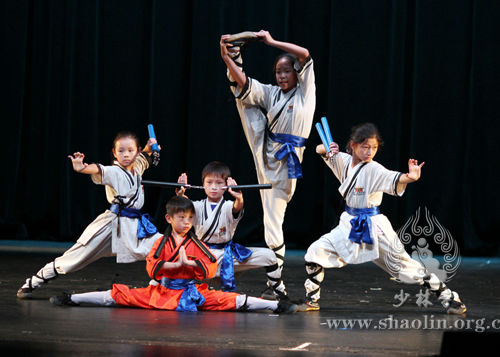 Shaolin Temple USA’s Kung Fu showcase was one of the audience’s most favorite programs of the evening. Shifus and students’ spectacular performance of traditional Shaolin fist and weapon forms, including Shaolin Seven Stars Fist, Six Harmonies Sparring Sets, Mantis Fist, Double Whips, Wind Chasing Broadsword, Fiery Whirlwind Staff and Shaolin Hard Qigong, was rewarded with high praises and roaring applause from the audience. The Shifus mesmerized the audience with their superb performance and Kung Fu prowess, while the students enchanted the viewers with their Kung Fu skills, spirit and team work.