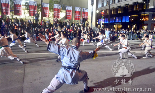 (7pm, April 28, 2017, San Francisco) The 2017 New Year Parade Excellent Awarding Ceremony and Chinese New Year Banquet hosted by the U.S. San Francisco Chinese General Chamber of Commerce were convened. Willie Brown, former mayor of San Francisco, presented an Silver Award to the square array led by Yanran, the director of Shaolin Cultural Center in San Francisco. It is the 6th time that the Center has won the awards, including two Gold Awards, for demonstrating Shaolin Kung Fu at this world famous parade.