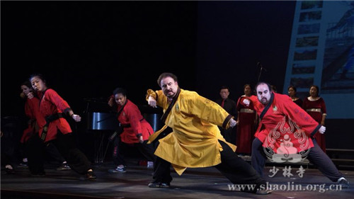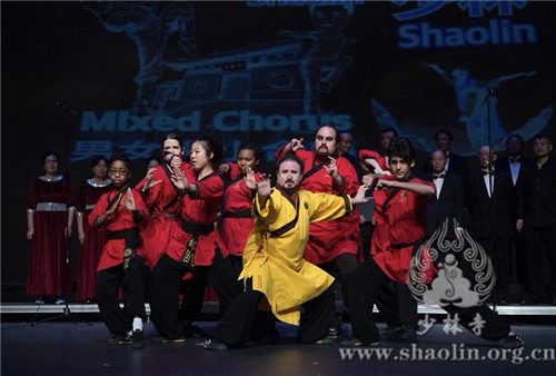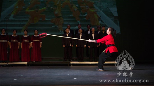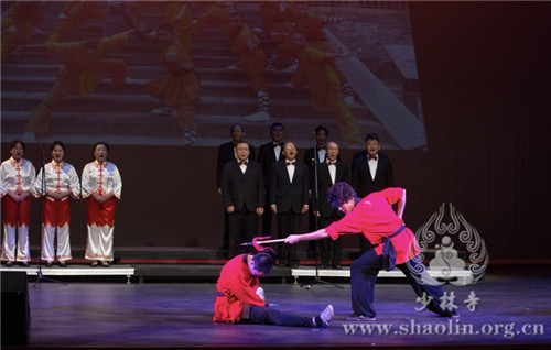 In the evening party, students showed wonderful Shaolin Linked boxing, Shaolin Fist, Plum-blossom Falchion, Shaolin Cudgel, Shaolin Spring and Autumn Falchion and so on. While working with choir, with combination of Chinese and Western elements, beautiful songs and wonderful Kungfu performances were perfectly combined, which brought the atmosphere to a climax. (Editor: Chanyue)