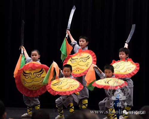 On the day of the performance, head of cultural center Yanruan led students to exhibited Hard Qigong, Xiangxingquan Boxing, Shield & Broadsword, Pyramid, Group Boxing, etc. The students were full of vigor and vitality and the Chinese wind ran through the room. The audiences were shocked by Shaolin Kungfu and passed a real Chinese New Year with a meaningful Chinese atmosphere.