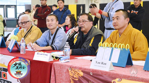 Founder and chief director of Chinese Wushu Competition Zhang Guoxuan was specially invited as the Superior Judge of the Shaolin Warriors Meet. Former director of technical supervision committee of Guangdong Provincial Traditional Wushu Championship and director of Shaolin Wellness Center Master Li Ningyao, and Master Yanyong of Silicon Valley Shaolin Cultural Center served as the head judges of the two venues. National first-level Health Qigong instructor and referee Zhou Shufen, trainee coach of Beijing Capital University of Physical Education and Sports as well as Master Hengwu, Master Hengyuan, Master Hengxiu, Master Hengzhen, Master Hengshen, Master Hengti and others participated in the refereeing work.