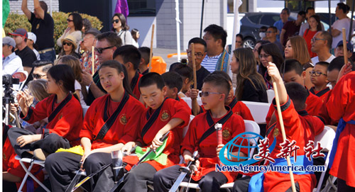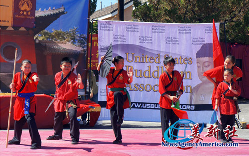 During the celebrations, students from around the California displayed Shaolin boxing, Shaolin weapons, Shaolin regimen and other Shaolin martial arts. The youngest performer aged 5. Besides Shaolin Kungfu demonstration, there were also Chan cultivation experience, health Qi Gong lectures, tea ceremony experience, lute-playing, Shaolin rainbow ceremony experience and others. There was a warm atmosphere on scene and people of all ages and both sexes communicated joyfully and cheerfully. (Edited by Zou Xiang and photos by News Agency America)