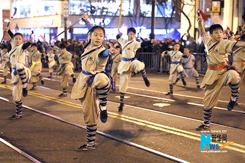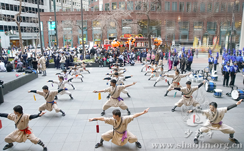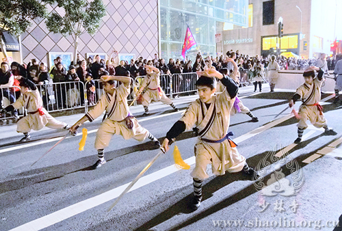 On February 23, the day of the parade, when team Shaolin Temple USA showcased Shaolin Damo Straight Sword’s fluid, intricate, precise, versatile and forceful swordplay, along with the Shifus’ display of breathtaking Shaolin fist forms, traditional weapons, airborne leaps and jaw-dropping kicks, the audience was mesmerized, rewarding the team with non-stop applause and cheers.