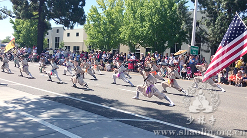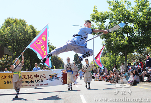 A 40-member parade team from Shaolin Temple USA’s San Francisco, Fremont and Silicon Valley Shaolin Culture Centers participated in this year’s parade. This is the team’s 6th year in this popular parade showcasing Shaolin Kung Fu to share China’s magnificent traditional culture to mainstream America. Team Shaolin Temple USA received rave response at every appearance and became a highlight of this annual event.